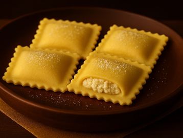 Delicada pasta artesanal rellena con una mezcla cremosa de los mejores quesos italianos.